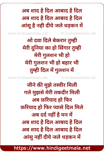 Lyrics of Ab Shaad Hai Dil Aabaad Hai Dil - अब शाद है दिल आबाद है दिल