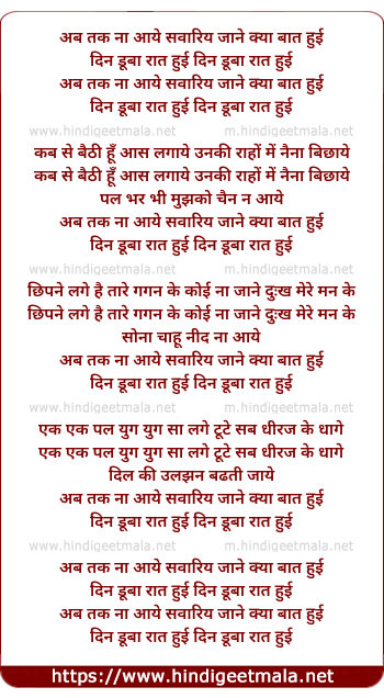 Lyrics of Ab Tak Na Aaye Saanwariya