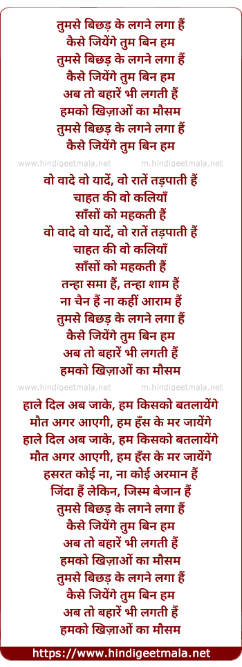 Lyrics of Ab To Bahaare Bhi - तुमसे बिछड़ के लगने लगा हैं