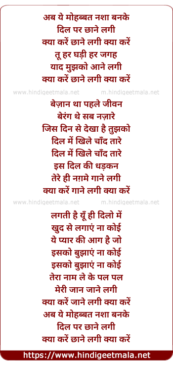 Lyrics of Ab Ye Mohabbat - अब ये मोहब्बत नशा बनके