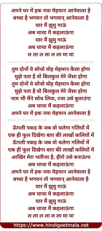 Lyrics of Abb Chaacha Main Kehlaayunga - अब चाचा मै कहलाऊंगा