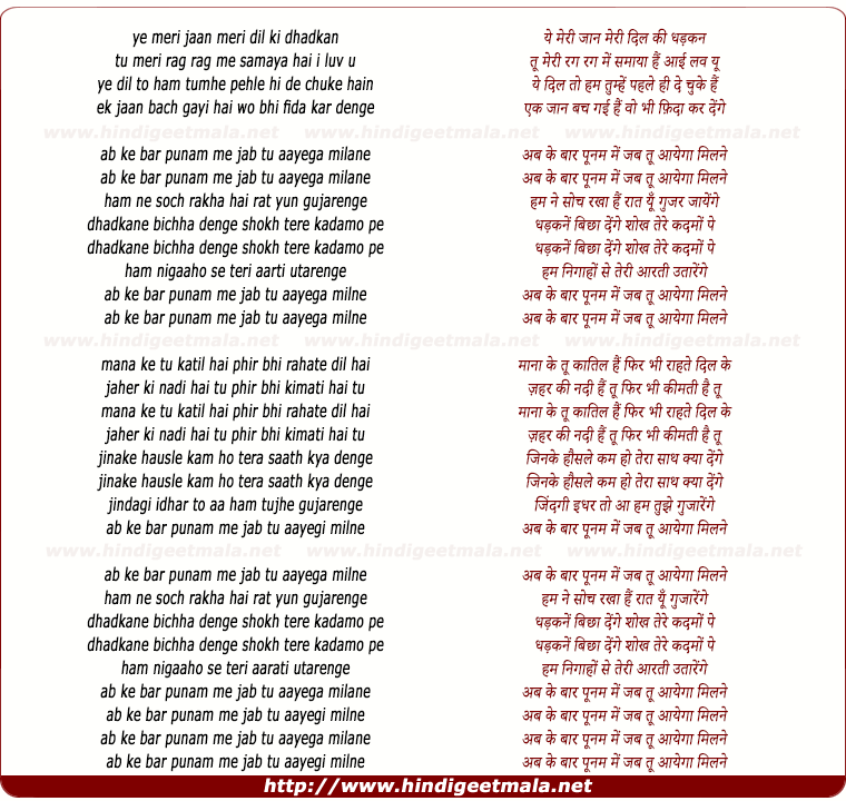 Lyrics of Ab Ke Bar Punam Me - अब के बार पूनम में