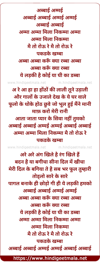 Lyrics of Abbaai Abbai Ammai Ammai - अब्बाई अब्बाई अम्मई अम्मई