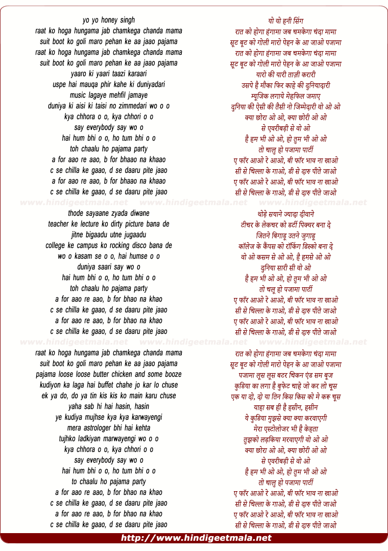 Lyrics of Raat Ko Hoga Hungama Jab Chamkega Chanda Mama - रात को होगा हंगामा जब चमकेगा चंदा मामा