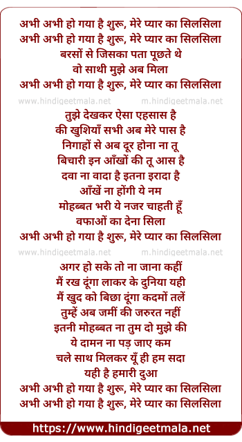 Lyrics of Abhi Abhi Ho Gaya Hai Shuru Mere Pyar Ka Silsila - अभी अभी हो गया है शुरू मेरे प्यार का सिलसिला