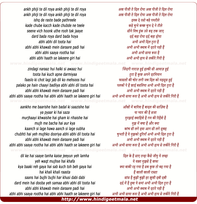Lyrics of Abhi Abhi Dil Tuta Hai - अभी अभी दिल टुटा है