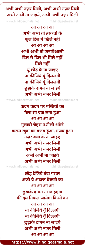 Lyrics of Abhi Abhi Nazar Mili - अभी अभी नज़र मिली