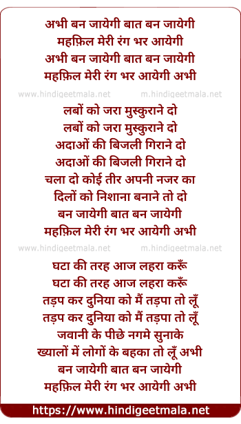Lyrics of Abhi Ban Jayegi Baat Ban Jayegi - अभी बन जायेगी बात बन जायेगी