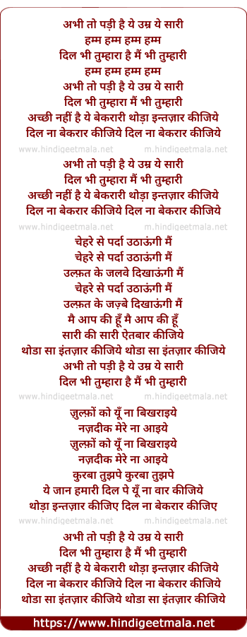 Lyrics of Abhi To Padi Hai Ye Umar Yeh Sari - अभी तो पड़ी है ये उम्र ये सारी