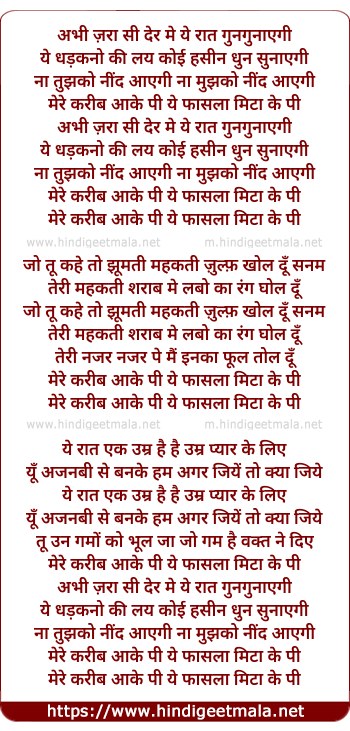 Lyrics of Abhi Zarra Si Der Me Ye Raat Gungunayegi - अभी ज़रा सी देर में ये रात गुनगुनाएगी