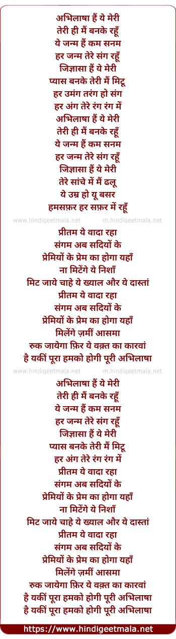 Lyrics of Abhilashaa - अभिलाषा हैं ये मेरी