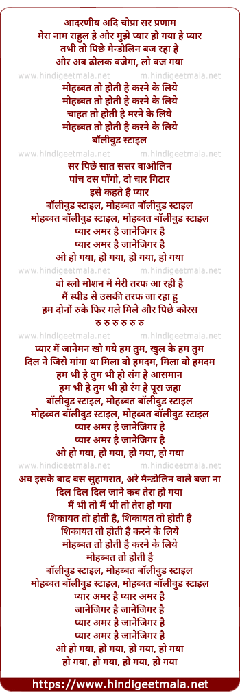 Lyrics of Adarniye Aadi Chopra, Mohabbat To Hoti Hai Karne Ke Liye - आदरणीय आदि चोप्रा, मोहब्बत तो होती है करने के लिये