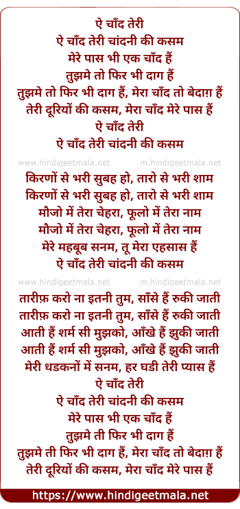 Lyrics of Ae Chaand Teree Chaandnee Kee Kasam - ऐ चाँद तेरी चांदनी की कसम