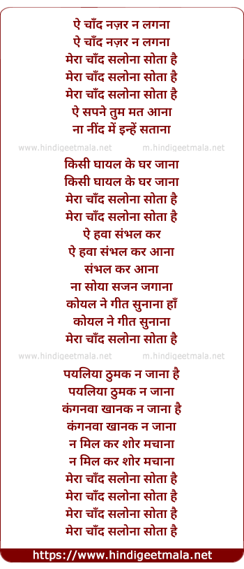 Lyrics of Ae Chand Nazar Na Lagana - ऐ चाँद नज़र ना लगाना