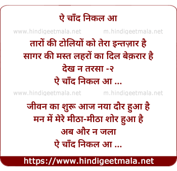 Lyrics of Ae Chand Nikal Aa - ऐ चाँद निकल आ
