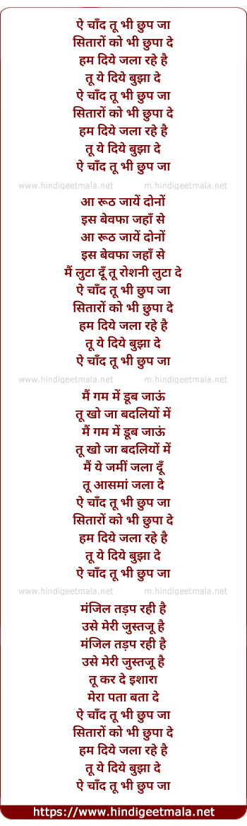 Lyrics of Ae Chand Tu Bhi Chhup Ja - ऐ चाँद तू भी छुप जा