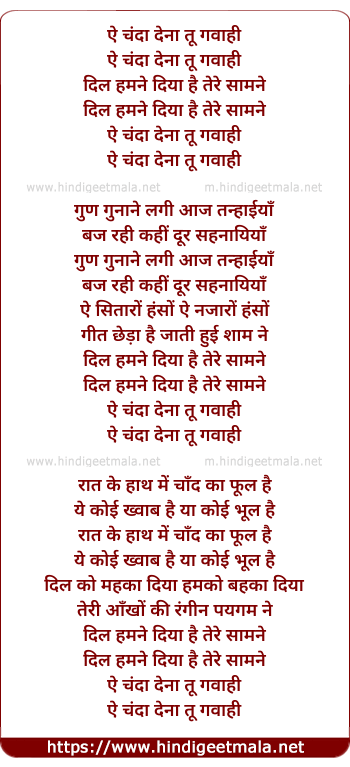Lyrics of Ae Chanda Dena Tu Gawahi - ऐ चंदा देना तू गवाही