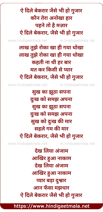 Lyrics of Ae Dil Bekarar - ऐ दिले बेकरार