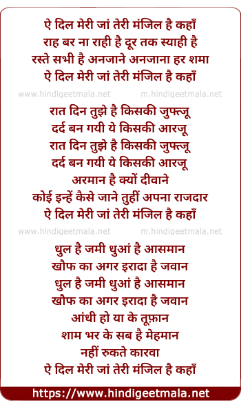 Lyrics of Ae Dil Meri Jaan Teri Manzil Hai Kaha - ऐ दिल मेरी जां तेरी मंजिल है कहाँ
