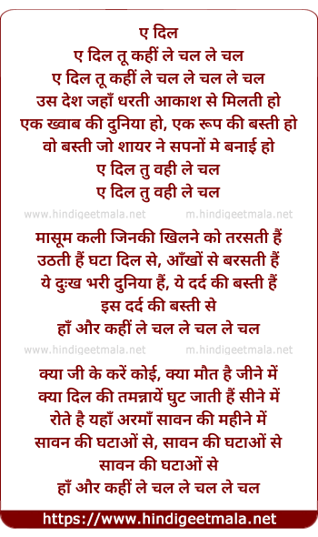 Lyrics of Ae Dil Tu Kahi Le Chal (Part-1) - ऐ दिल तू कहीं ले चल