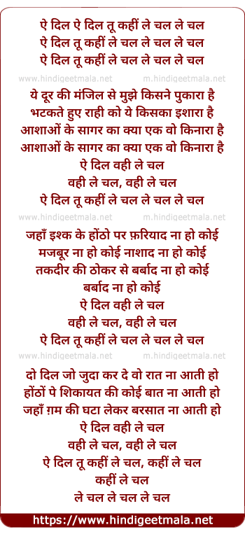 Lyrics of Ae Dil Tu Kahi Le Chal (Part-2) - ऐ दिल तू कहीं ले चल