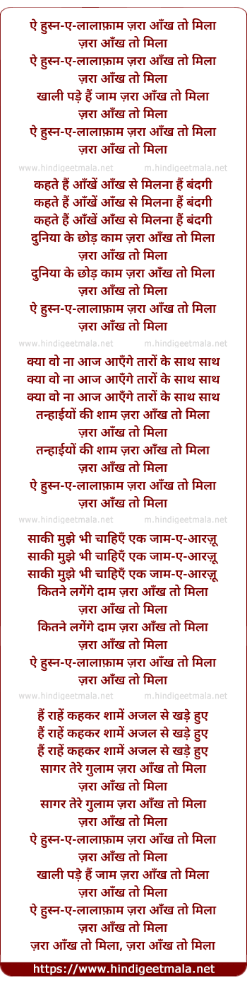 Lyrics of Ae Husn-E-Lalafam Zara Aankh To Mila - ऐ हुस्न-ए-लालाफ़ाम ज़रा आँख तो मिला