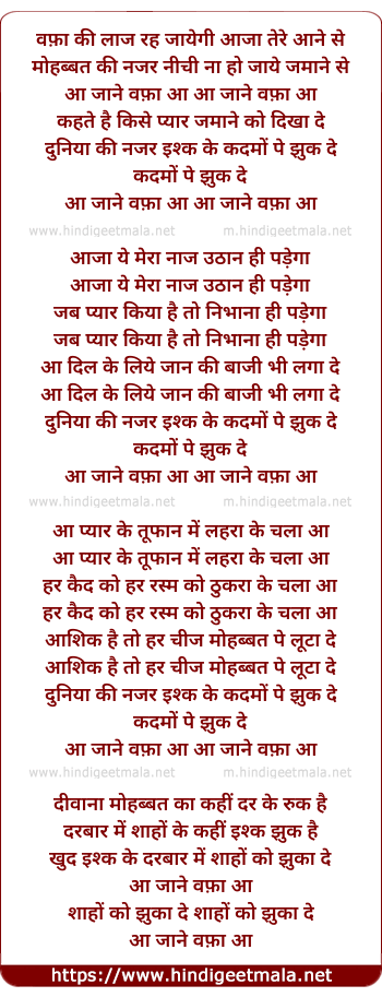 wafa ki laaj rah jaayegi aaja tere aane se