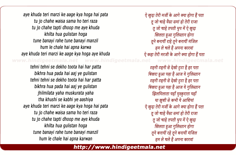 Lyrics of Ae Khuda Teri Marzi Ke Aage Kya Hoga Remix - ऐ खुदा तेरी मर्जी के आगे क्या होगा हैं पता