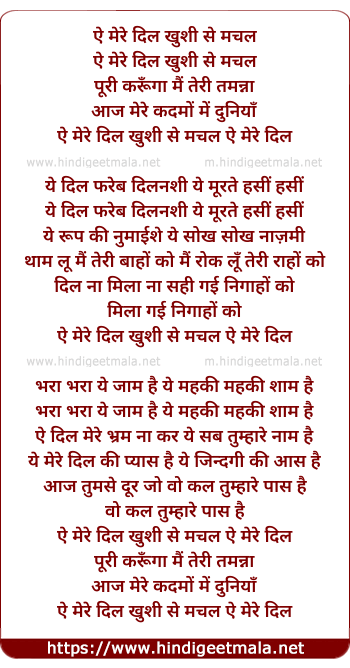 Lyrics of Ae Mere Dil Khushi Se Machal - ऐ मेरे दिल खुशी से मचल