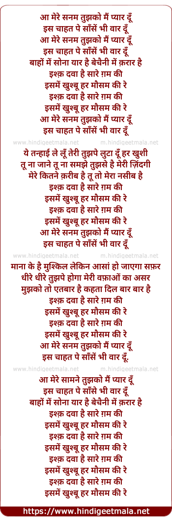 Lyrics of Aa Mere Sanam Tujhko Mai Pyar Du - आ मेरे सनम तुझको मैं प्यार दूँ