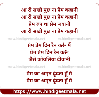 Lyrics of Ae Ri Sakhi Puchh Na Prem Kahani - आ री सखी पुछ ना प्रेम कहानी