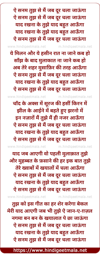 ae sanam tujh se mai jab dur chala jaaunga