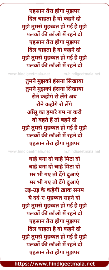 Lyrics of Aehsaan Tera Hogaa Mujh Par - एहसान तेरा होगा मुझ पर