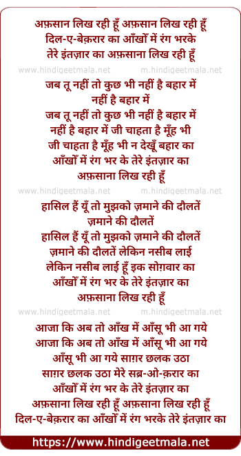 Lyrics of Afasaana Likh Rahi Hun, Dil-E-Beqraar Ka - अफ़साना लिख रही हूँ, दिल-ए-बेक़रार का