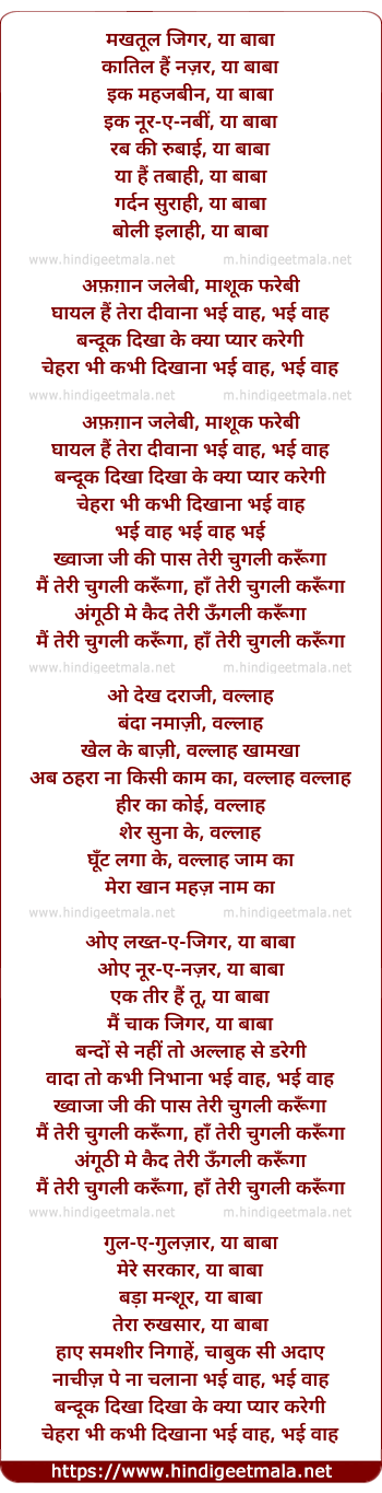 makhtool jigar, ya baba