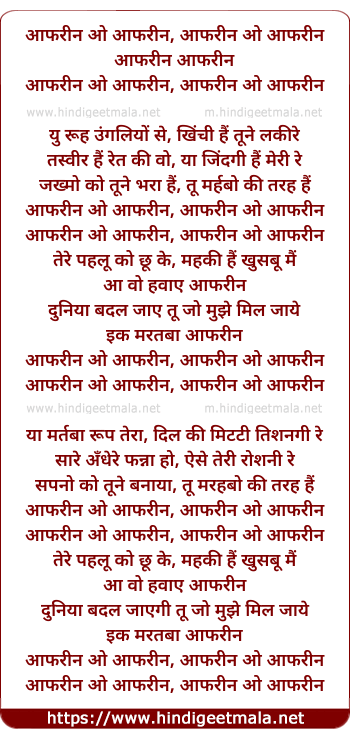 Poetic Translation - Lyrics of Afreen (Remix) - आफरीन ओ आफरीन, आफरीन ओ आफरीन