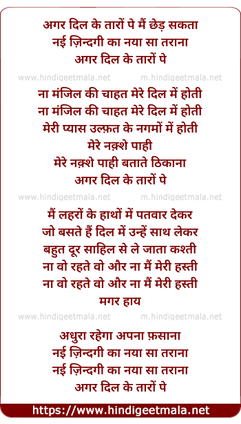 Lyrics of Agar Dil Ke Taaro Pe Mai Ched Sakta - अगर दिल के तारों पे मैं छेड़ सकता