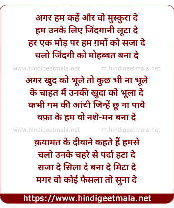 Lyrics of Agar Hum Kahe Aur Wo Muskrade - अगर हम कहें और वो मुस्कुरा दे