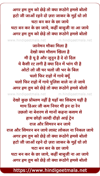 Lyrics of Agar Hum Tum Ko (Remix) - अगर हम तुम को छेड़े तो क्या रूठोगे हमसे बोलो