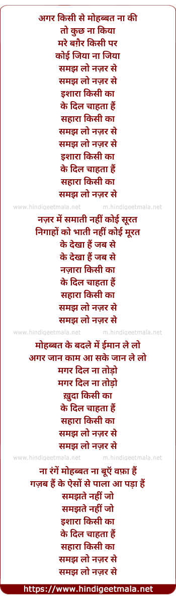 Lyrics of Agar Kisi Se Mohabbat Na Ki, Samajh Lo Nazar Se Ishaaraa Kisi Kaa - अगर किसी से मोहब्बत ना की, समझ लो नज़र से इशारा किसी का