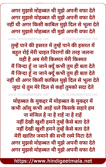 Lyrics of Agar Mujhse Mohabbat Thi - अगर मुझसे मोहब्बत थी मुझे अपनी वफा देते