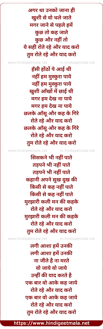 Lyrics of Agar Tha Unko Jaana - अगर था उनको जाना ही