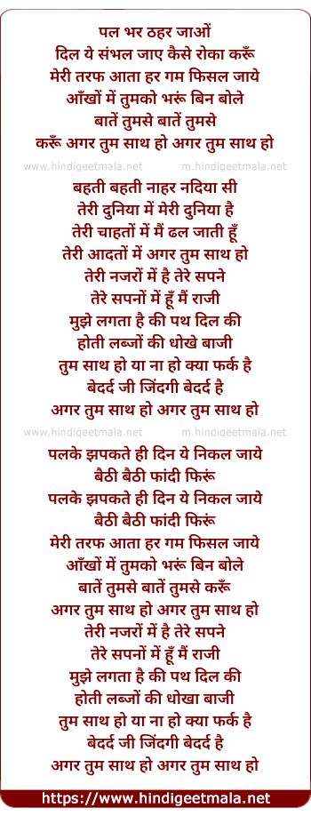 Lyrics of Agar Tum Saath Ho - अगर तुम साथ हो