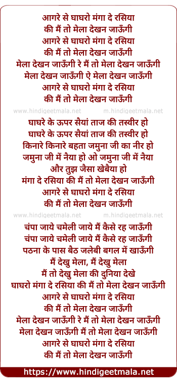 Lyrics of Agre Se Ghaghro Manga De Rasiya - आगरे से घाघरो मंगा दे रसिया
