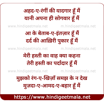 Lyrics of Ahad E Rangin Ki Yaadagaar Hun Main - अहद-ए-रंगीं की यादगार हूँ मैं