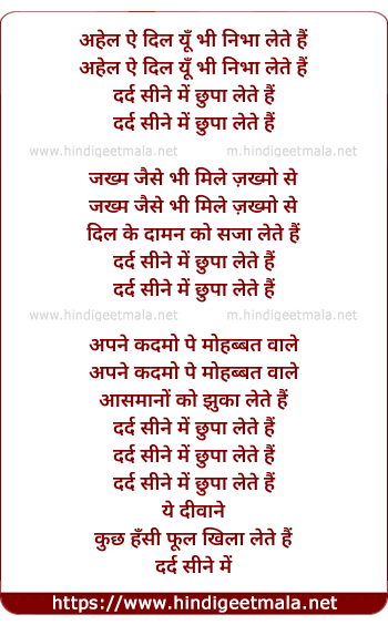 Lyrics of Ahal E Dil Yun Bhi Nibhaa Lete Hain - अहेल ऐ दिल यूँ भी निभा लेते हैं