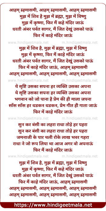 Lyrics of Aham Brahmasmee, Mujh Me Shiv Hain - आहम् ब्र्हमासमी, मुझ में शिव है
