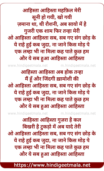 Lyrics of Ahista Ahista - आहिस्ता आहिस्ता