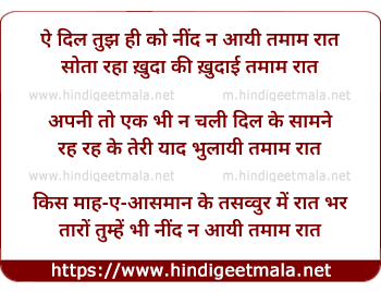 Lyrics of Ai Dil Tujh Hi Ko - ऐ दिल तुझ ही को नींद न आयी तमाम रात