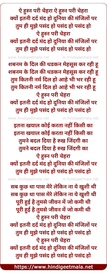 Lyrics of Ae Husn Pari Chehra - ऐ हुस्न परी चेहरा